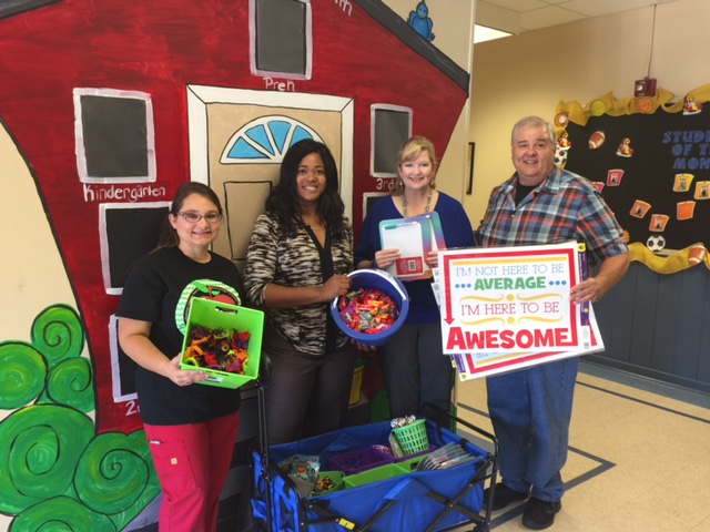 On Tuesday, October 4th, Brentwood Elementary received some goodies for their PBIS store. The local Central Labor Committee donated funds to stock the store. Calcasieu Federation of Teachers went shopping. Pictured - Megan Fuselier, Kindergarten teachers; Dr. Chasity Stewart, Principal; Teri Johnson, Calcasieu Federation of Teachers; Todd Johnson, representing the Central Labor Council.