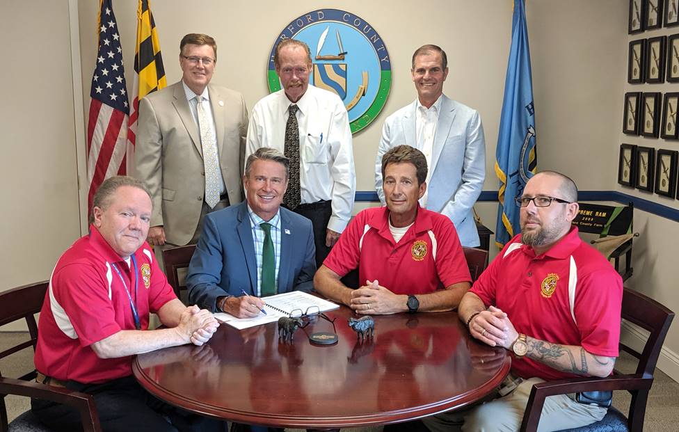 Harford County officials signed the MOU on June 27, 2019 with MCEA's bargaining unit representing county employees. The one year Agreement is for the fiscal year beginning on July 1, 2019. Effective July 1, 2019 all eligible Harford County Government employees will receive a $2,000 merit increase to be added to their base pay.
